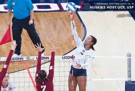 STORRS, Conn. - Coming off a weekend split at SMU and Tulsa, the UConn volleyball team will host UCF on Friday at 4 p.m. (ET) and USF on Sunday at 12 p.m. (ET) in Gampel Pavilion, as the Huskies play their first home game since Sept. 28.