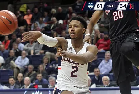The UConn Huskies had a chance to tie the game at the end when Alterique Gilbert stole the ball as Northeastern was trying to run out the clock. But his 3-pointer hit the rim.