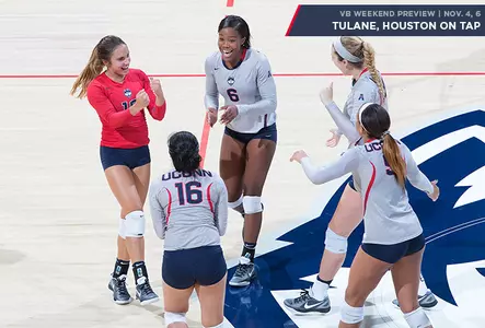 STORRS, Conn. - Recently snapping a five-match losing skid with a straight-set victory over Memphis on Sunday, the UConn volleyball prepares to hit the road for an American Athletic Conference weekend against Tulane and Houston.