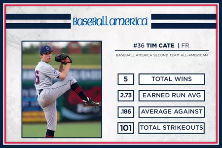 DURHAM, N.C. - Freshman LHP Tim Cate (Manchester, Conn.) added another accolade to his credit on Monday after turning in a spectacular rookie season, securing Baseball America Freshman Second Team All-America honors, as announced by the organization.
