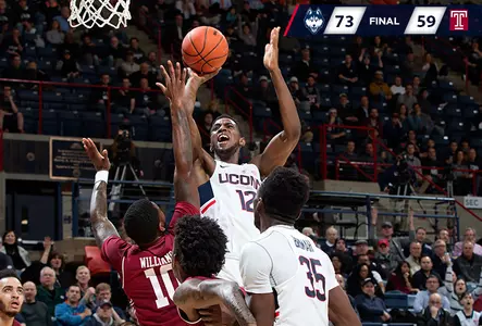 Temple was able to cut that back to single digits, before UConn stretched it back out. An alley-oop from Adams to Brimah pushed the lead back to 16 at 67-51 with 4 1/2 minutes remaining and that deficit was too much for Temple to overcome.