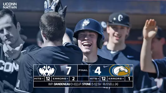 The UConn bullpen got the job done on Friday, pitching six innings of relief and only yielding one run. CJ Dandeneau (North Smithfield, R.I.) earned his first career victory, pitching a scoreless eighth inning for the Huskies. John Russell (Glastonbury, Conn.) pitched the ninth inning and earned his fourth save of the season.