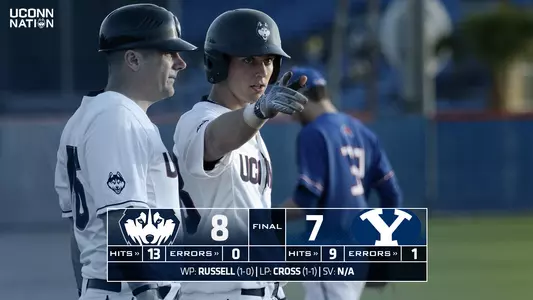 PROVO, Utah - Trailing 7-6 in the ninth, the UConn baseball team scored two runs to prevail 8-7 over BYU on Friday night at Miller Field.