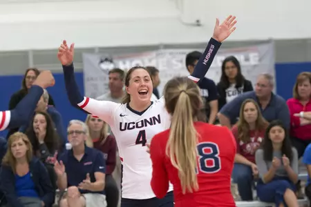 STORRS, Conn. - The UConn volleyball team took down Memphis, 3-1, in its first conference match of the season in front of a full capacity crowd at Guyer Gym on Friday night. With the win, the Huskies improve to 8-5 overall and 1-0 in the AAC, while the Tigers fall to 7-6 overall and 0-1 in conference action.