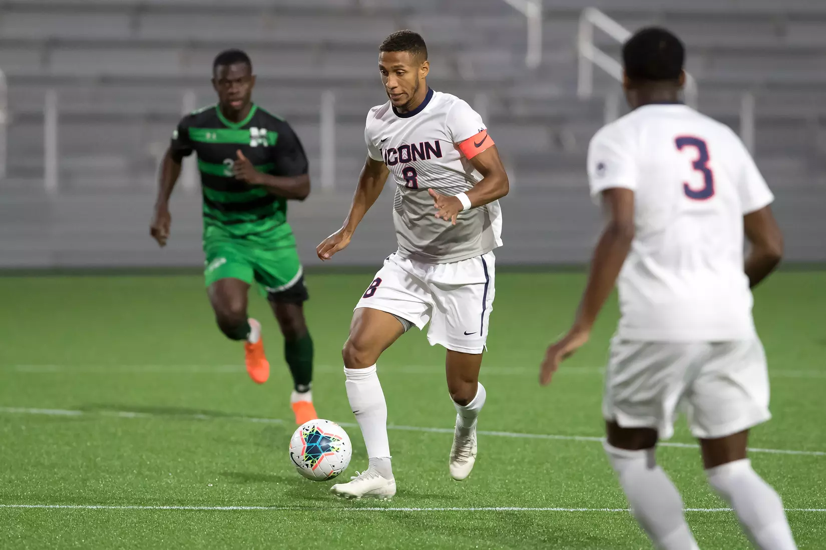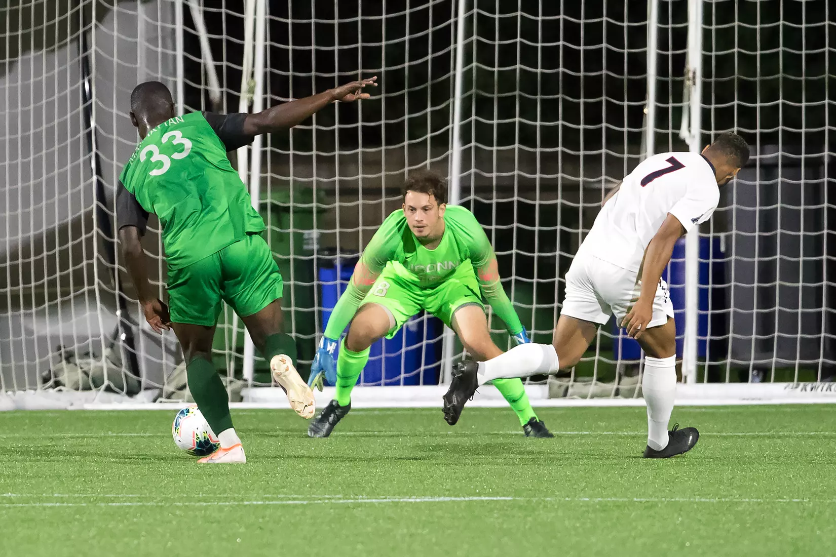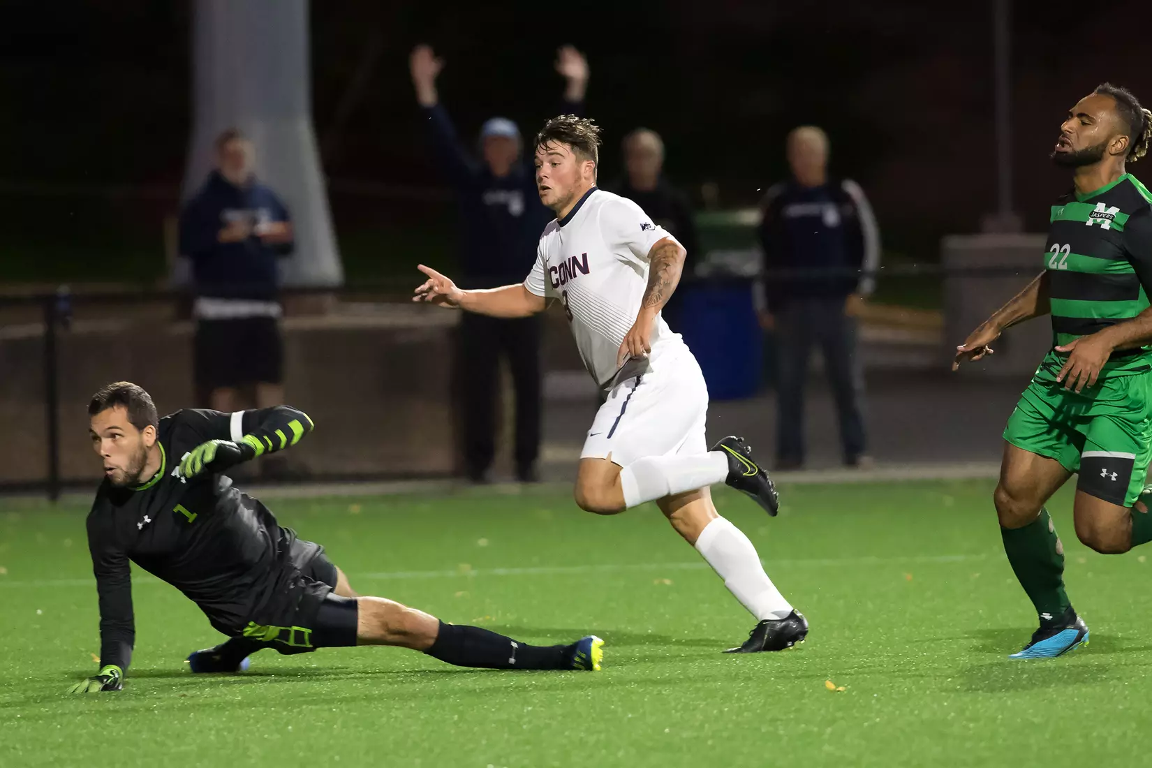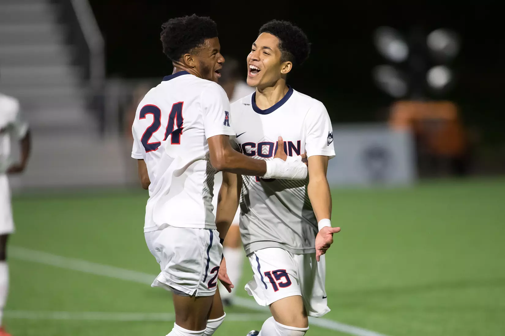 Senior Jordan Hall and redshirt-junior Cole Venner paced the Huskies with one goal apiece, with Dayonn Harris, Robin Lapert and Djimon Johnson providing the assists. Sophomore goalkeeper Gianluca Catalano collected three saves in net and earned his second shutout of the season.