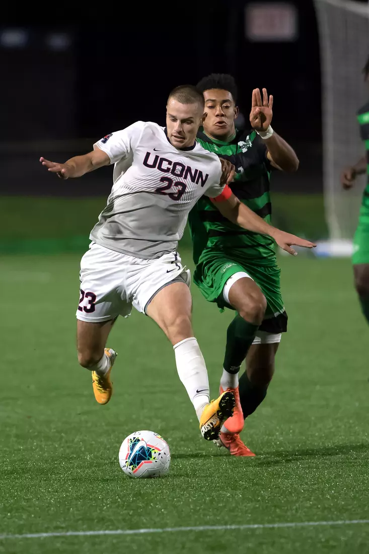 The Huskies struck again midway through the second half on Venner's first goal of the season. Robin Lapert played a beautiful ball out to the redshirt-junior, and Venner eluded two defenders before drilling his shot at 62:32 to give UConn a 2-0 advantage.